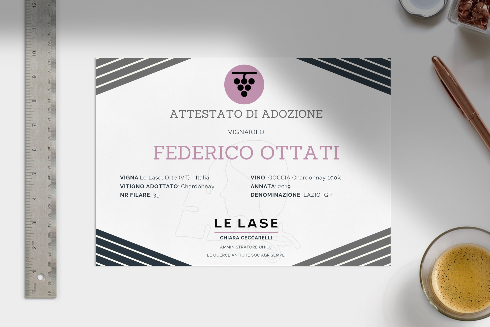 - Name and surname of the adopter on the header of the adopted row and on the adoption certificate , with the possibility of donating the row to third parties.